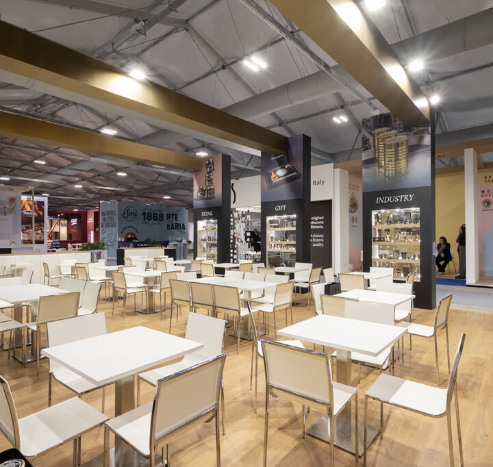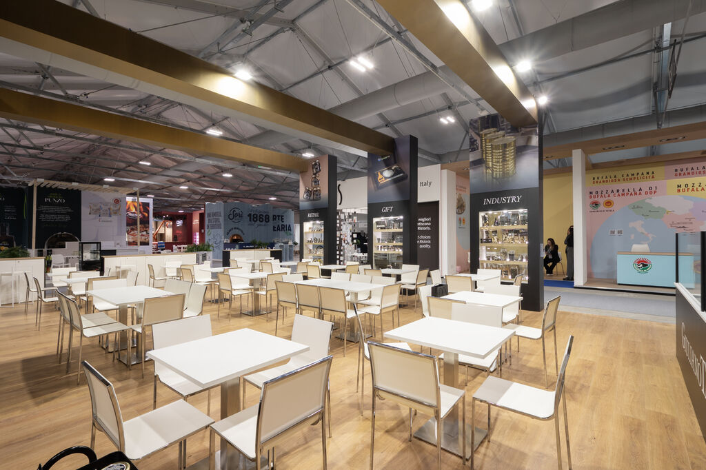 Il progetto si è distinto per un design completamente personalizzato, ispirato ai valori di autenticità, qualità e innovazione del brand, con l’impiego di materiali ricercati, finiture premium e un layout funzionale pensato per favorire l’interazione con i visitatori e le attività di degustazione e un banco showcooking dedicato alla preparazione dei prodotti.